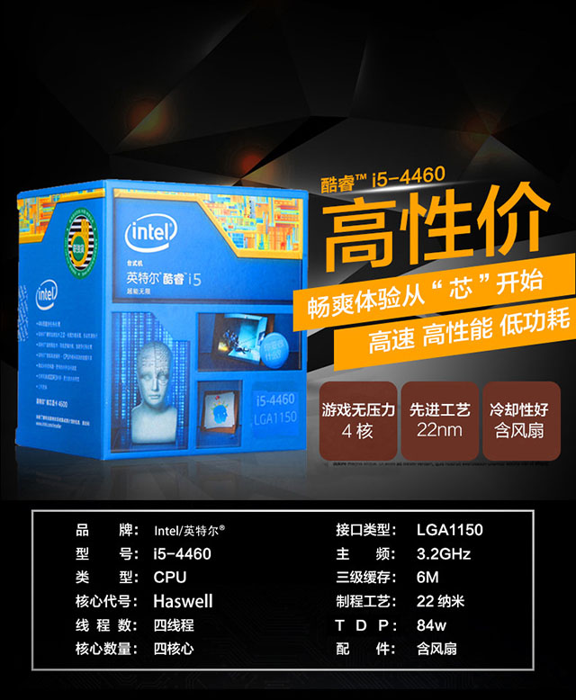 英特尔(Intel)酷睿四核 i5-4460 1150接口 盒装CPU处理器